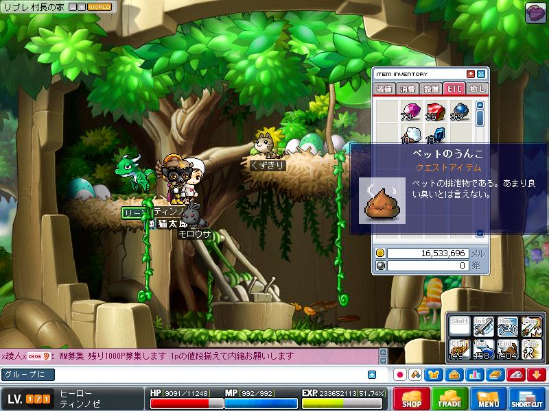 補足:英雄のコダマ(Lv200限定のスキルで攻撃と魔力が2時間5%上がるそうです。かけるときは200の人の周りに群がりましょう、その場にいる人全員にかかります。スキル解除 上書きなどはされません。)